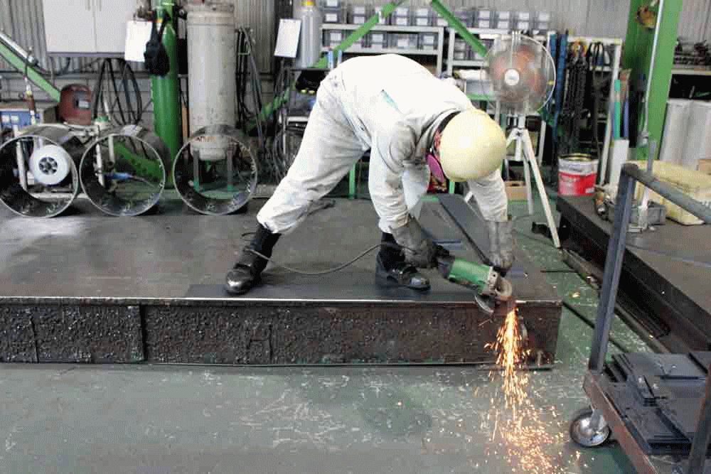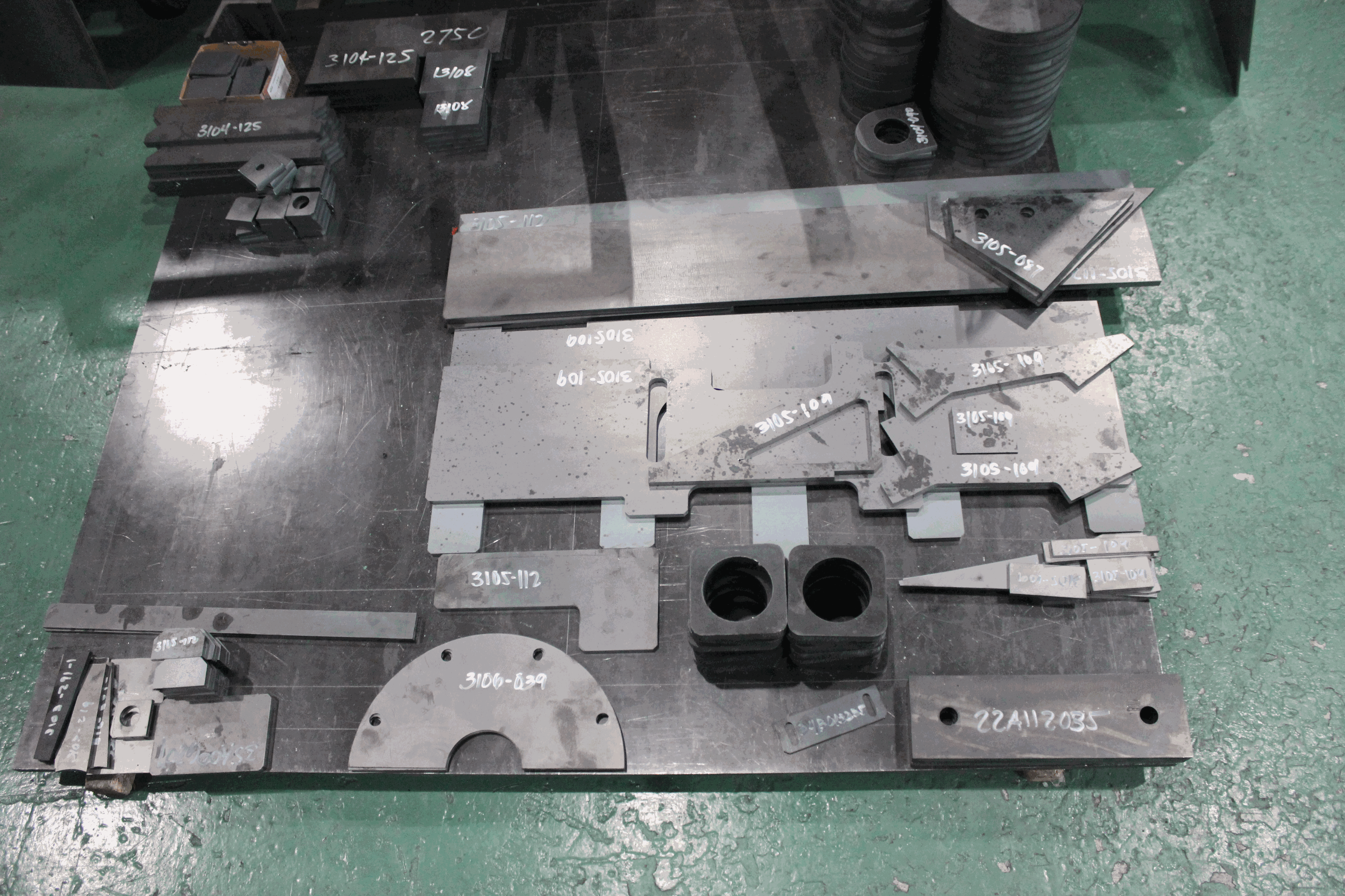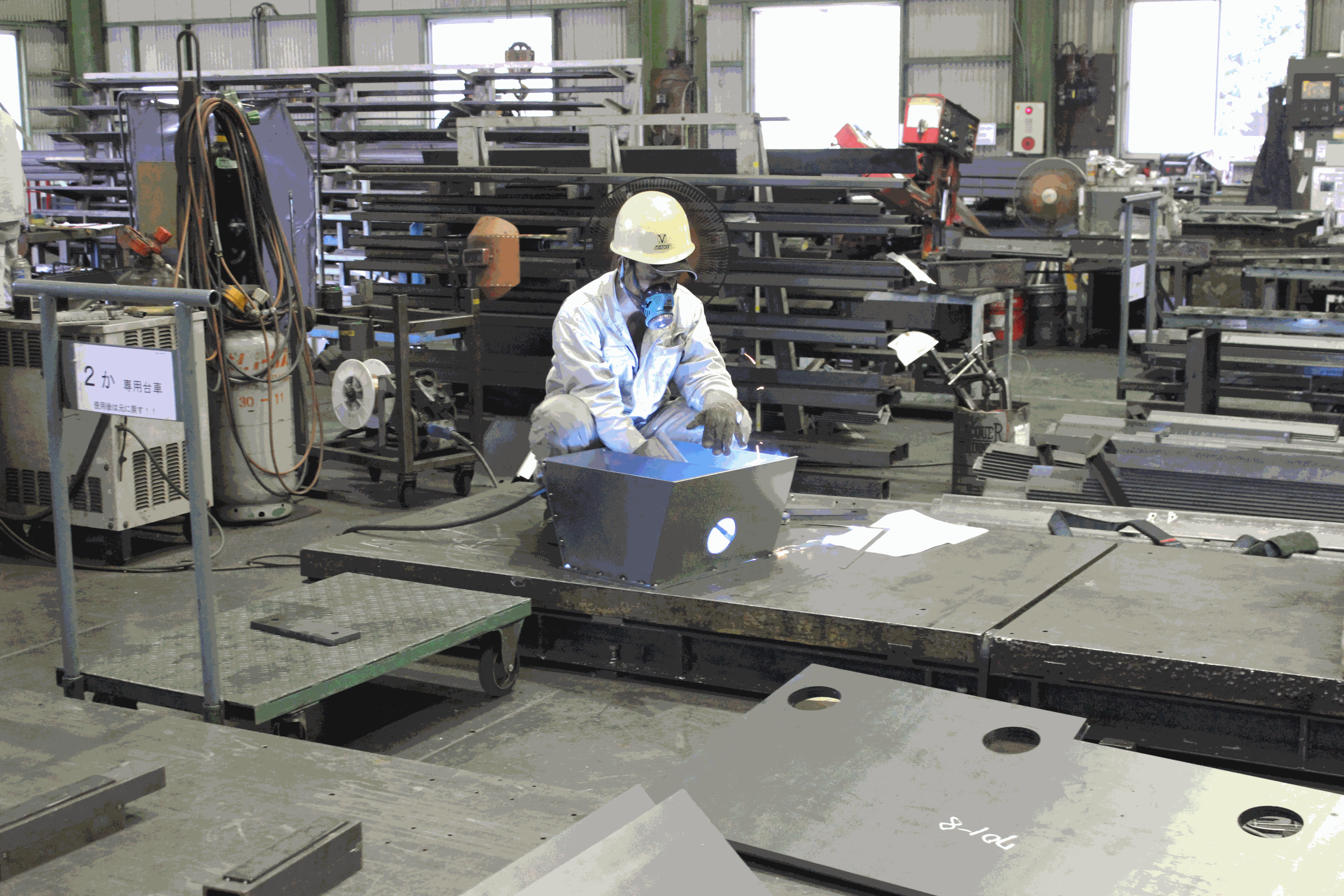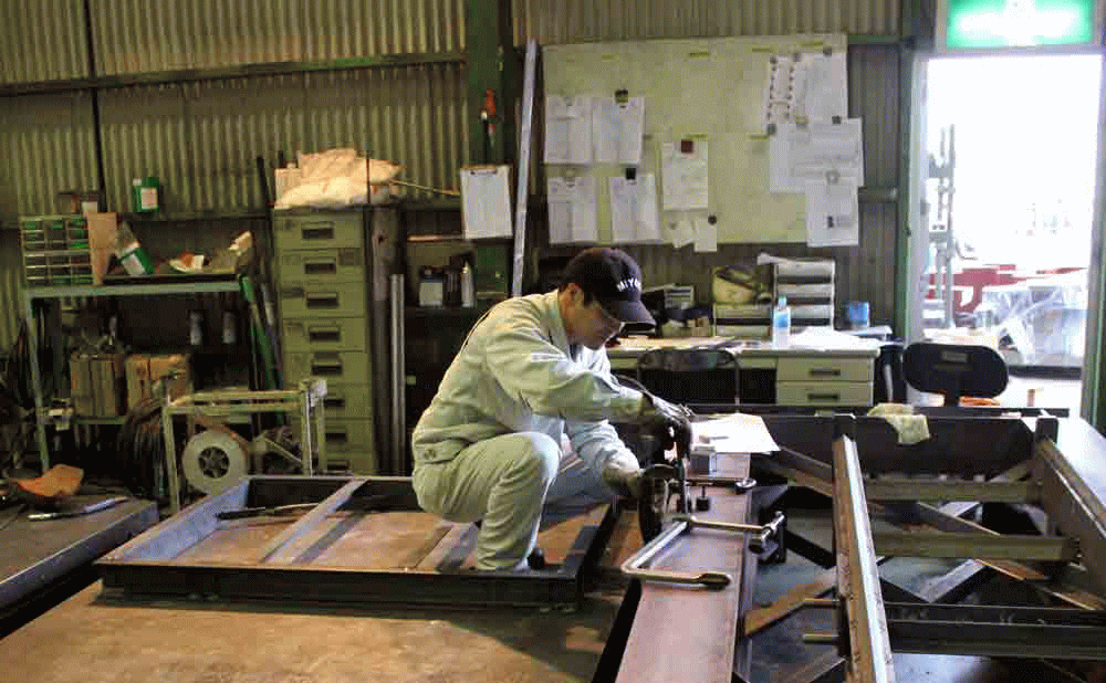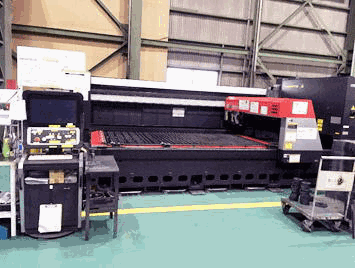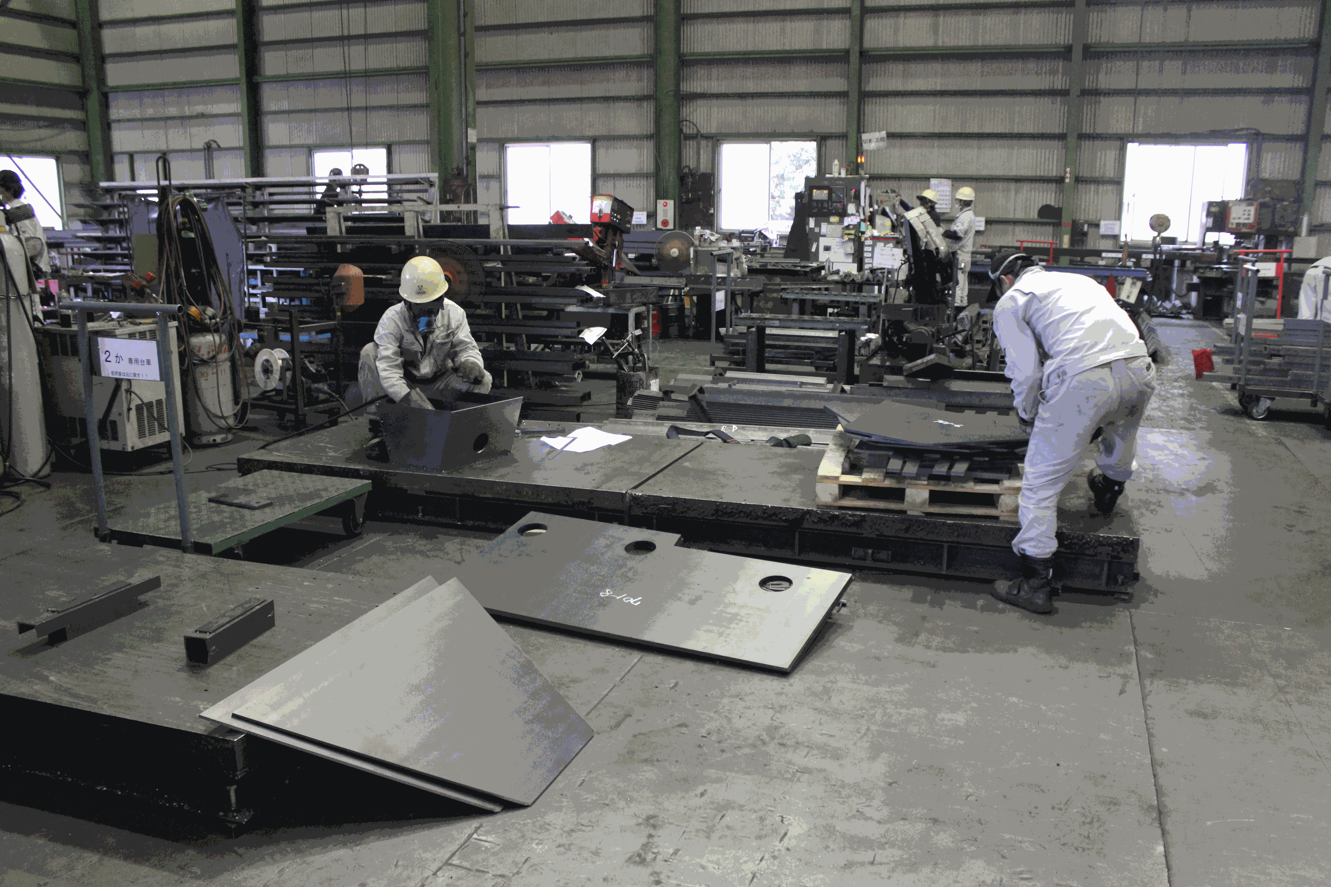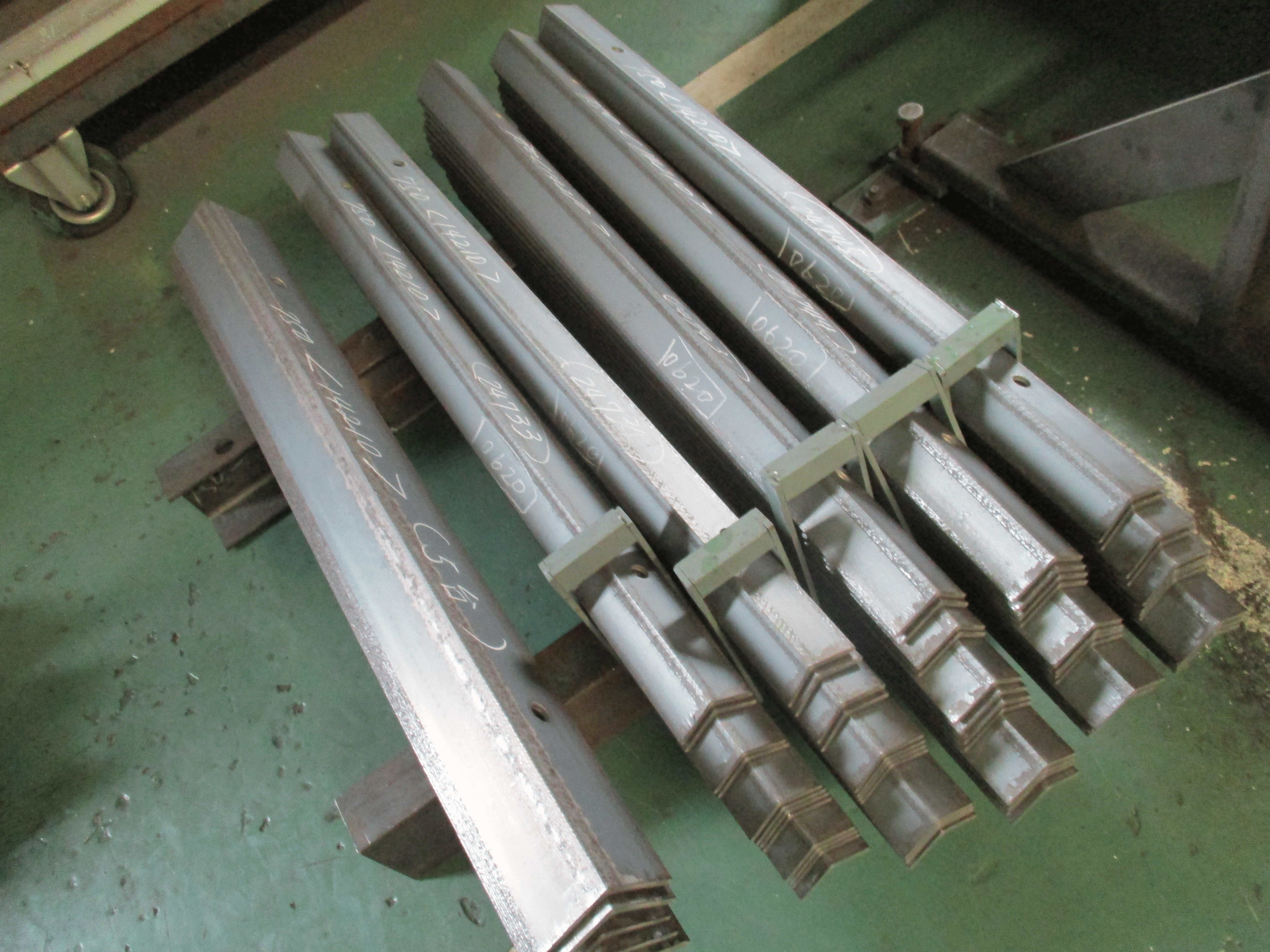 | CADで形状データを作り、1枚の鉄板から図面(設計図)通りの形に切り出す。 I型鋼、L形鋼を切り出す | |||||||